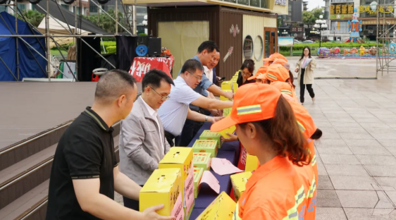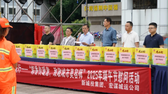 為深入踐行習(xí)近平總書記“以人民為中心”“勞動最光榮”的指導(dǎo)思想,切實把組織關(guān)懷送到基層勞動者心坎上,進一步提升環(huán)衛(wèi)職工隊伍的職業(yè)認同感和幸福感,2025年5月29日端午節(jié)前夕,新城投集團聯(lián)合宏謀城運公司在秀峰區(qū)中心廣場舉辦“粽香傳暖意,致敬城市美容師”端午節(jié)慰問活動。此次活動得到市城管委,秀峰區(qū)政府、城管局、環(huán)衛(wèi)站的大力支持與指導(dǎo)。市城管委黨組成員、副主任蔣毅出席活動。受新城投集團黨委書記、董事長朱毅委托,黨委副書記、紀委書記、工會主席譚力源代表集團黨委、領(lǐng)導(dǎo)班子及全體職工,向奮戰(zhàn)在環(huán)衛(wèi)一線的干部職工致以節(jié)日問候。