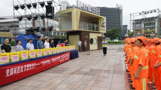 譚力源在講話中回顧了新城投集團秀峰區(qū)環(huán)衛(wèi)項目的發(fā)展歷程。作為資產(chǎn)超300億元的綜合性國有企業(yè),集團黨委始終堅持黨建與業(yè)務(wù)深度融合、雙向促進,以“黨旗映勝地”黨建品牌為引領(lǐng),在城市建設(shè)主戰(zhàn)場、城市運營第一線等領(lǐng)域交出亮眼答卷。他指出,自承接秀峰區(qū)環(huán)衛(wèi)項目以來,項目452名職工以“繡花功夫”守護城市顏值,在三屆桂林馬拉松賽事和三屆“三月三”民族歌圩薈活動的環(huán)衛(wèi)保障、“6.19”特大洪澇災(zāi)害應(yīng)急清淤、漓江河“消劣返清”整治行動等重大任務(wù)中沖鋒在前、勇挑重擔(dān)。這些成績的背后,凝聚著每一位環(huán)衛(wèi)職工的心血與汗水,是“勞動最光榮”的生動注腳。