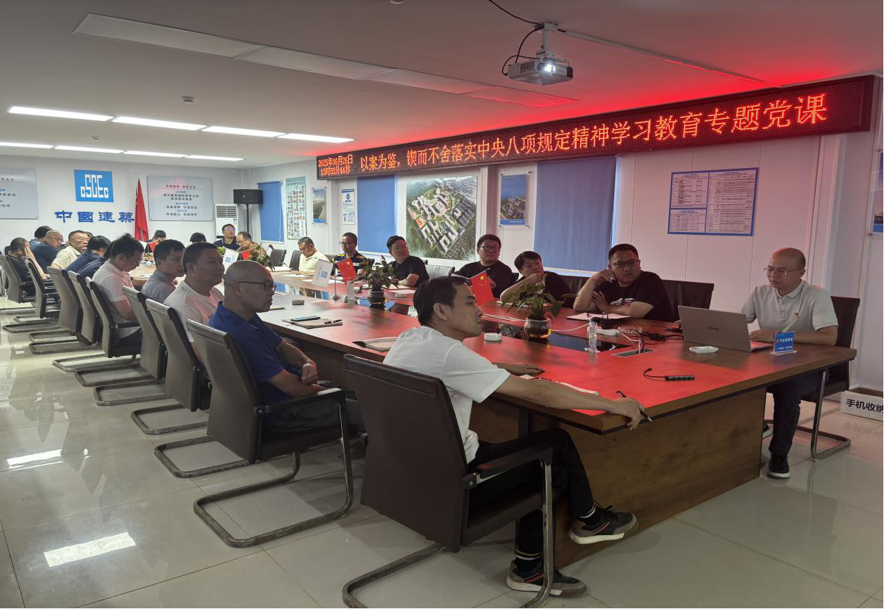 會議尾聲,葉青旺以《以案為鑒,鍥而不舍落實中央八項規(guī)定精神》為題講授專題黨課。課程通過剖析近期違反中央八項規(guī)定精神的典型案例,深刻揭示違規(guī)違紀(jì)行為的思想根源,警示全體黨員要以案為鑒、防微杜漸。黨課強(qiáng)調(diào),重大項目更要嚴(yán)守廉潔底線,將中央八項規(guī)定精神在項目上落地生根。